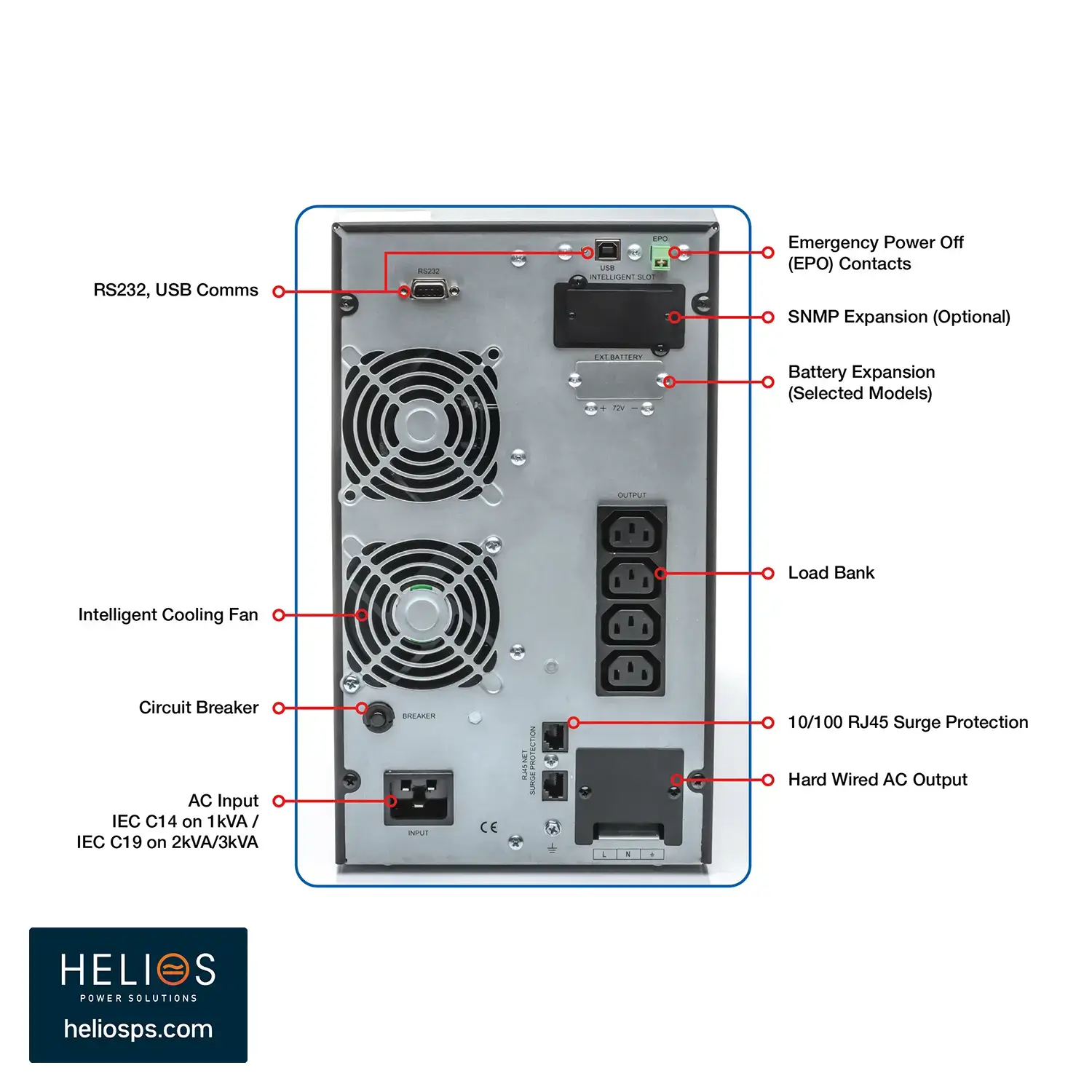 • USB & RS232 interfaces, optional SNMP card for monitoring and control